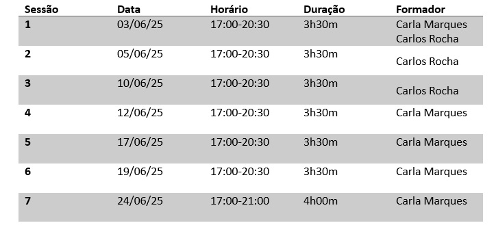 Cronograma da ação de formação